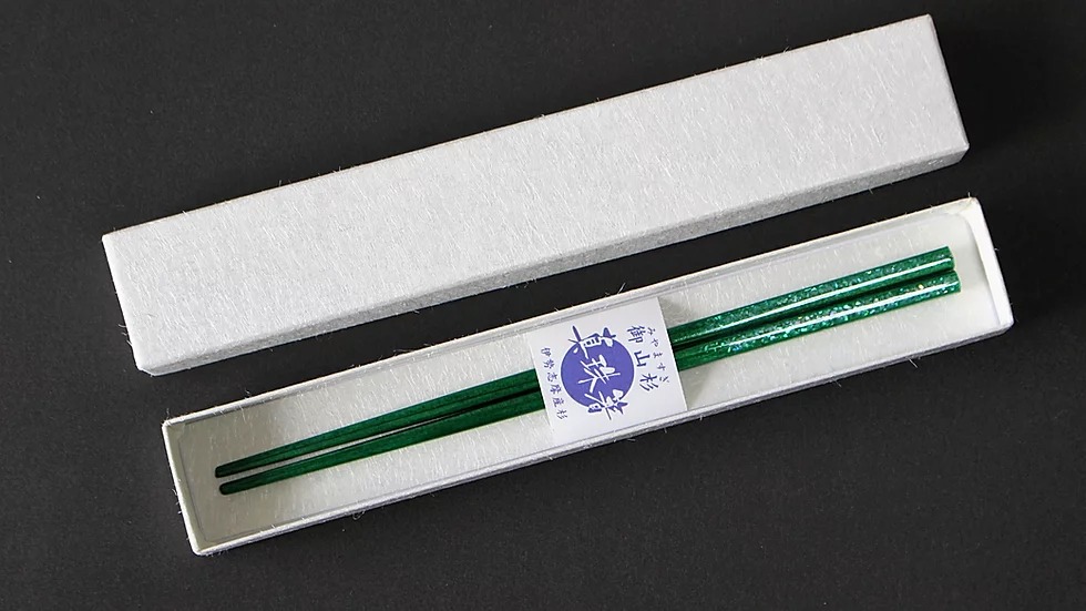 御山杉「真珠箸」は、真珠貝の真珠層をちりばめた塗り箸です。