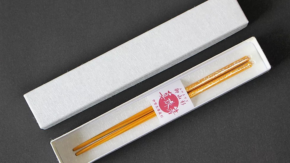 御山杉「真珠箸」は、真珠貝の真珠層をちりばめた塗り箸です。