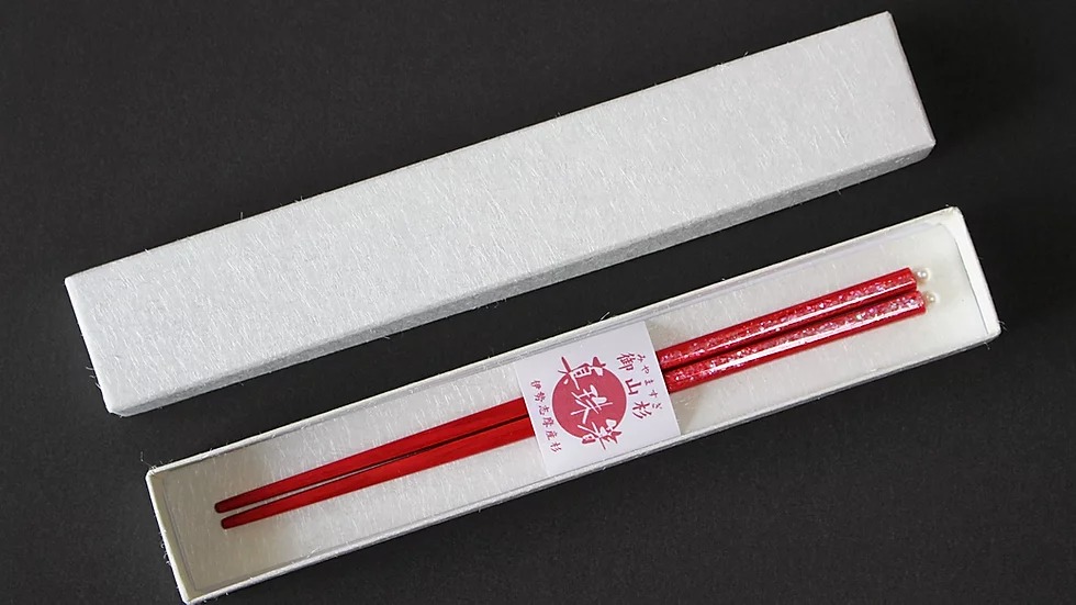 御山杉「真珠箸」は、真珠貝の真珠層をちりばめた塗り箸です。